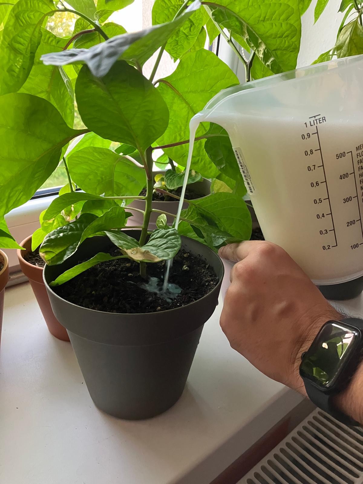 Hnojivem můžete rostliny nejen zalévat ke kořenům, ale můžete ho také nalít do rozprašovače a rostliny jím stříkat