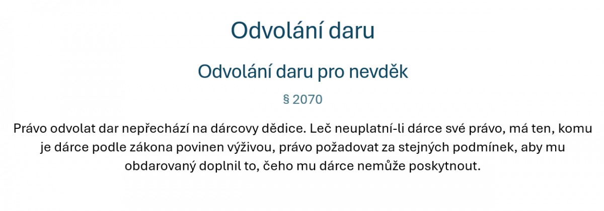V tomto případě právo na vrácení daru nepřechází na dárcovy dědice