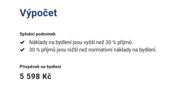 Petr, který bere přes 50 000 Kč/měsíc, dostane od státu příspěvek na bydlení ve výši 5 598 Kč