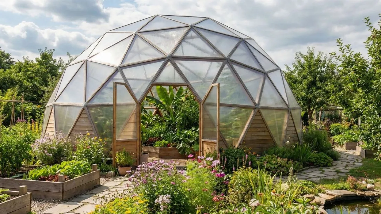 Německý „geodome“ skleník se zabydluje na českých zahradách. Lepší světelnost, teplo i proudění vzduchu umožňuje celoroční pěstování