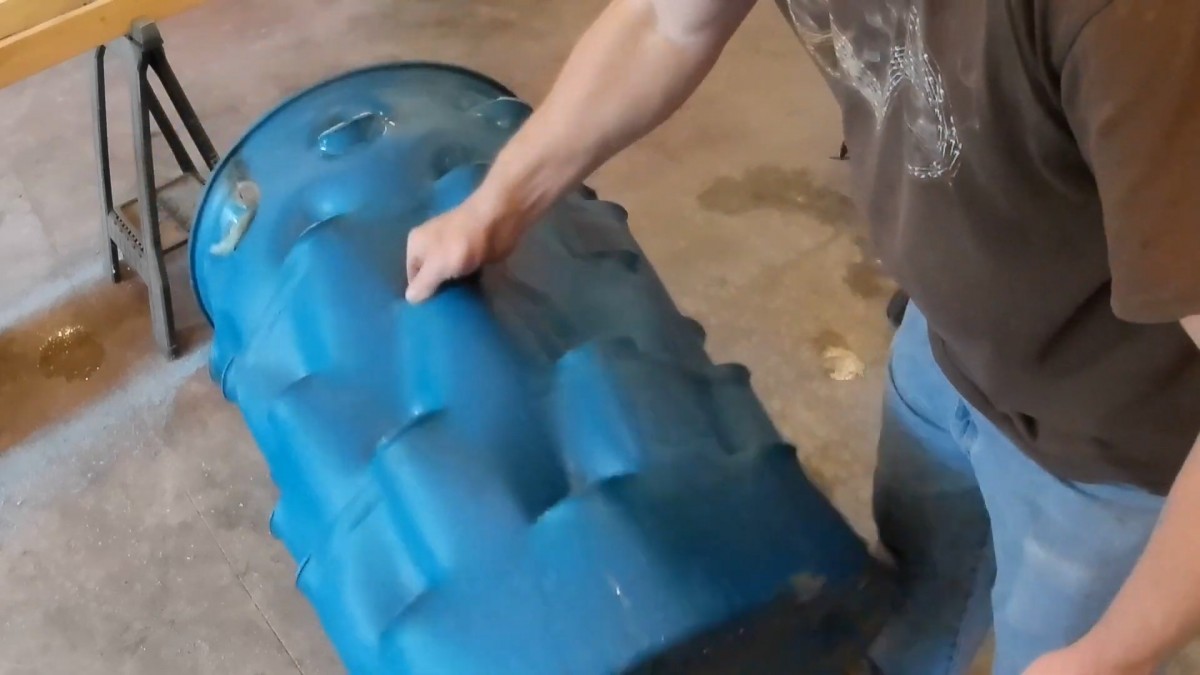 A teď přijde na řadu praktická věc. Sud otočte a připravte si dno pro odtok vody, bez toho to fungovat nebude