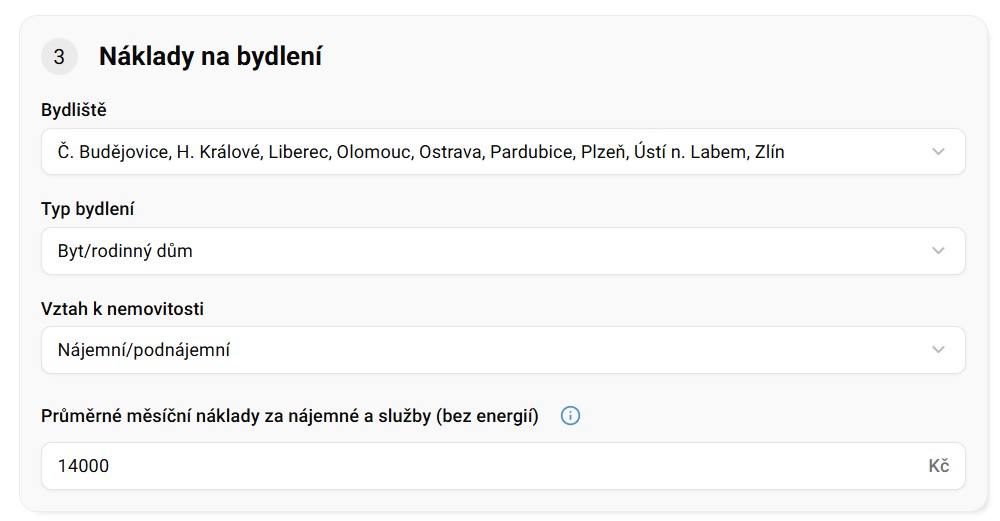 I náklady na bydlení zůstávají stejné. Aneta je ve stejném městě i bytě