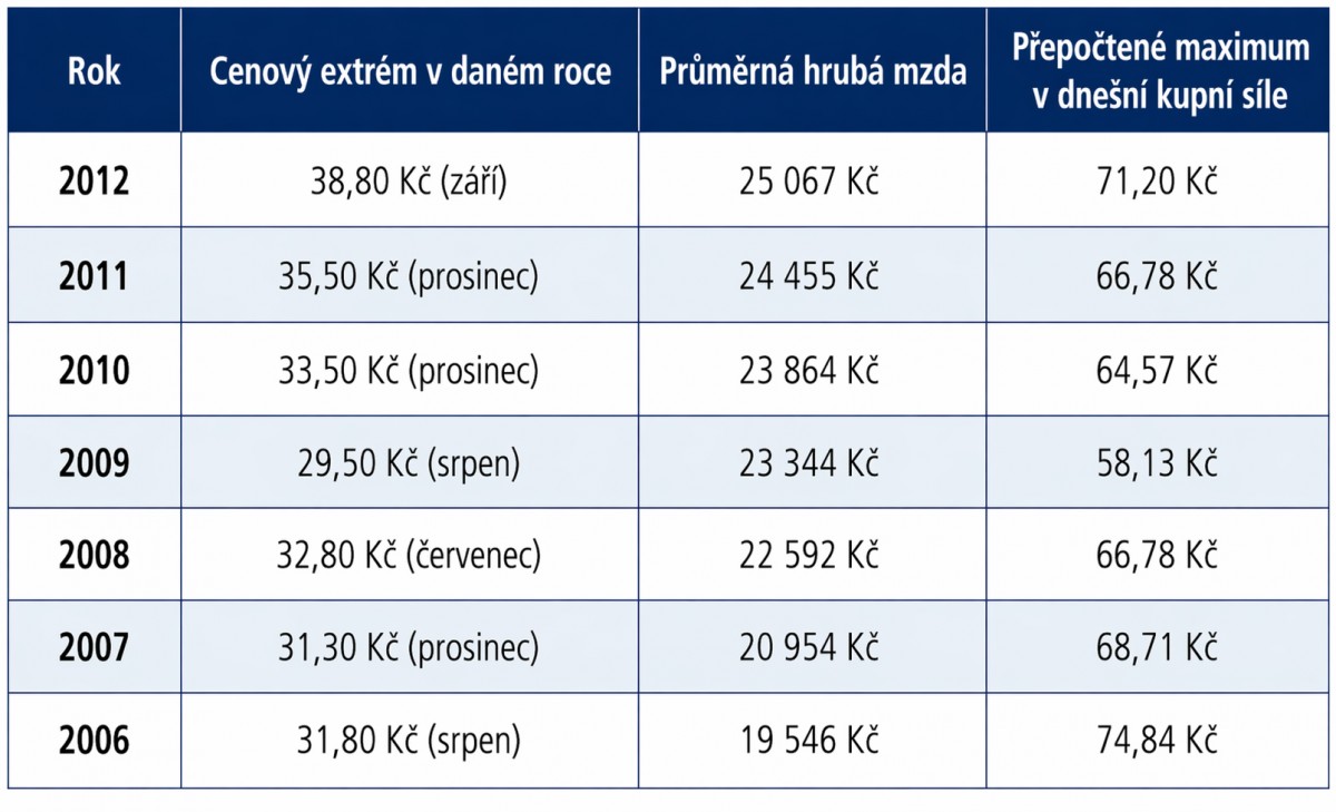 Ceny benzínu kolem roku 2012 přesáhli 70 korun za litr a nikomu to tenkrát nevadilo