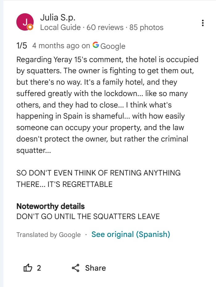 Příběh jako ze špatného snu se děje majitelce rodinného hotelového komplexu, který z finančních důvodů ponechala nějakou dobu bez dozoru. V době, kdy byl opuštěn, se do něj na černo nastěhovaly desítky bezdomovců a odmítají z něj odejít. Majitelka se není schopna dovolat svého práva a ještě za ně musí platit elektřinu.