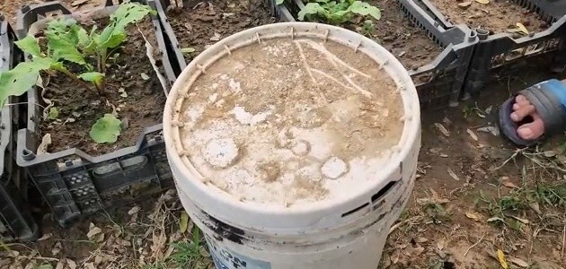 Nádoba se směsí biouhlu a kompostu se uzavře a nechá několik dní odležet, aby materiál nasál živiny a mikroorganismy