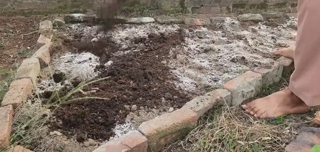 Na aktivní materiál se nasype kompost nebo další organická hmota, aby směs získala živiny a podporu pro mikrobiální život v půdě