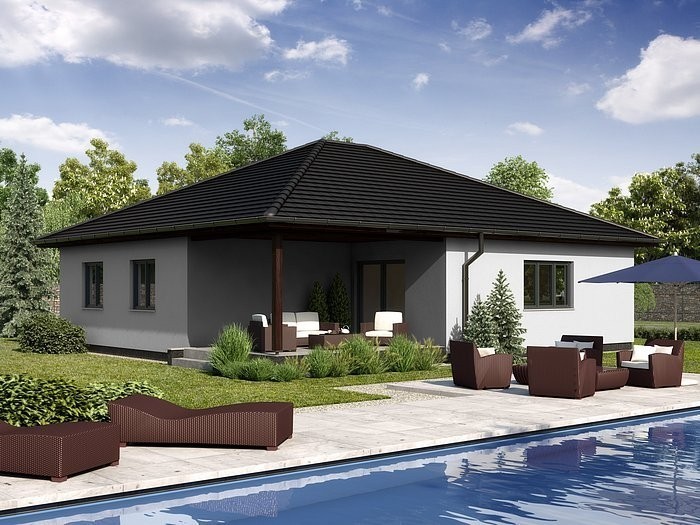Bungalov s užitnou plochou 105 m2 je velice kompaktní a obzvláště vhodný pro čtyřčlenné rodiny