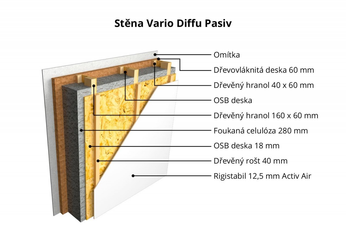 Příklad skladby difuzně otevřeného systému dřevostavby