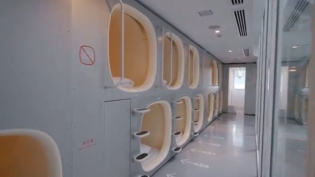 Řady kapslí v moderním interiéru. Stísněnost jako běžná součást bydlení v Japonsku