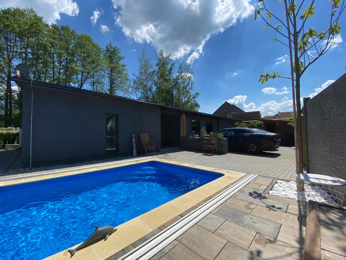 Rodinný dům zpěváka Bárty má zhruba 170 m2. Je to typický bungalov s centrálním obývákem, kolem kterého jsou navržené pokoje, koupelna i nahrávací studio