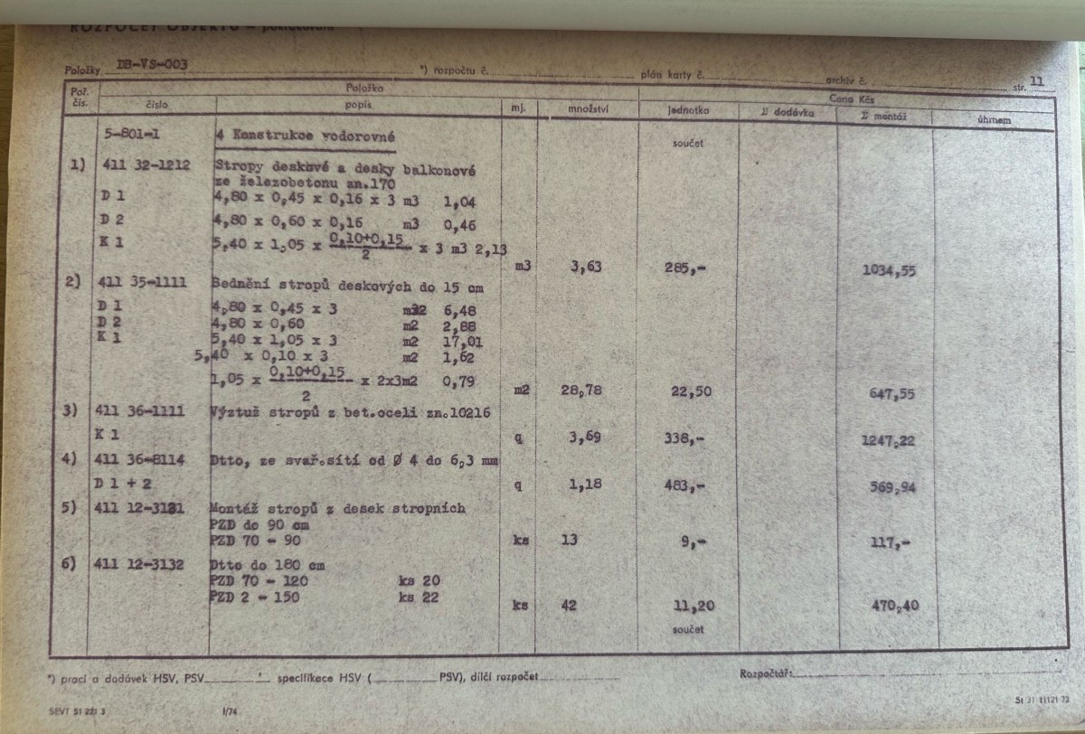 Komu se zdá drahé stavět dnes, měl by vidět tento rozpočet z roku 1978