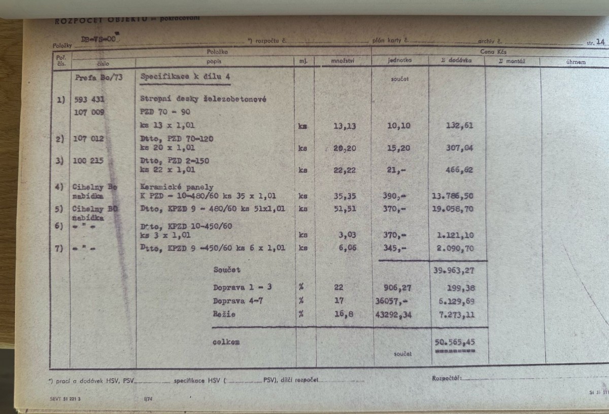 Kus železobetonu za 10 korun. Rozpočet, kterému dnes neuvěříte