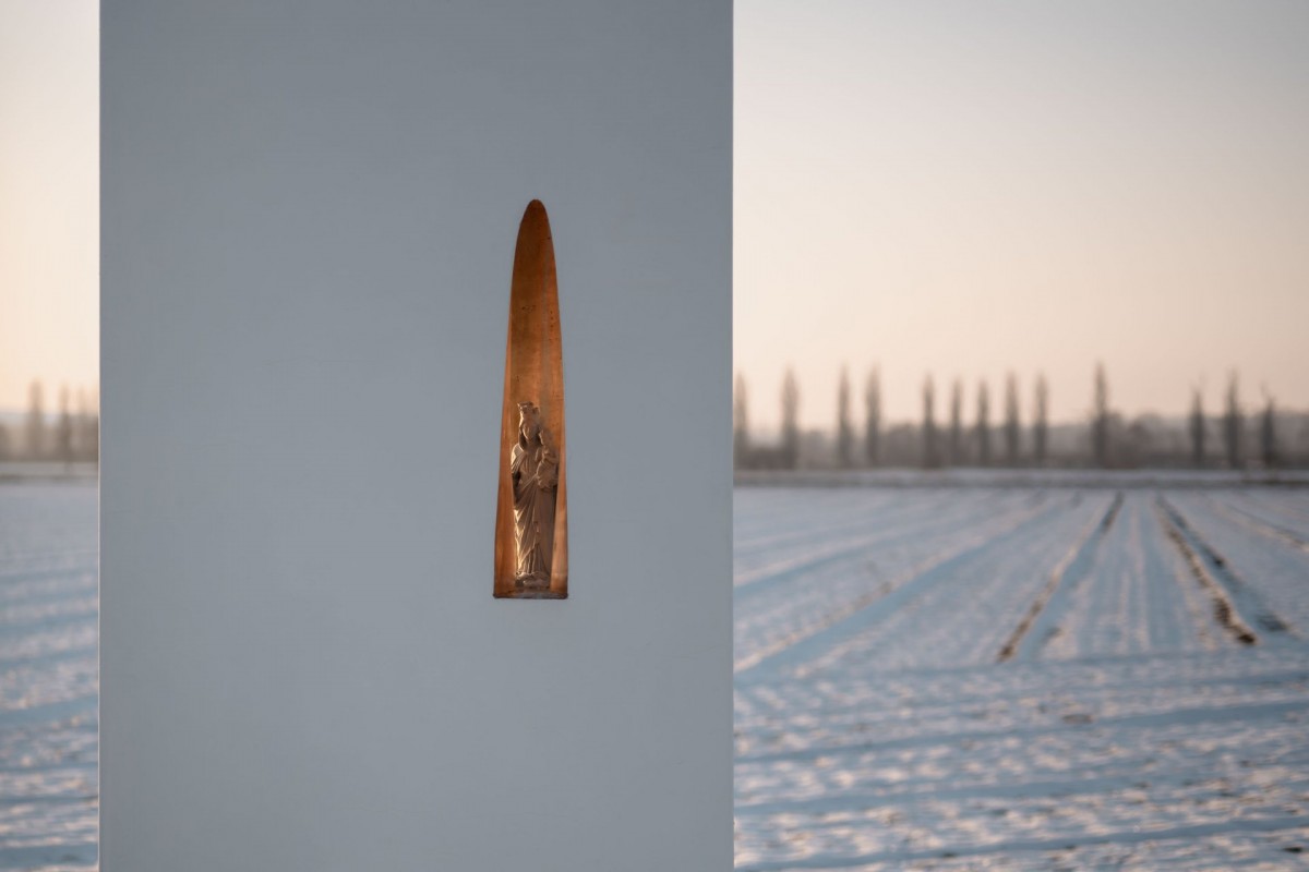 Je zděná ze starých cihel darovaných místními obyvateli, kteří se na její realizaci podíleli svépomocí, a uvnitř skrývá sošku Panny Marie vytištěnou na 3D tiskárně