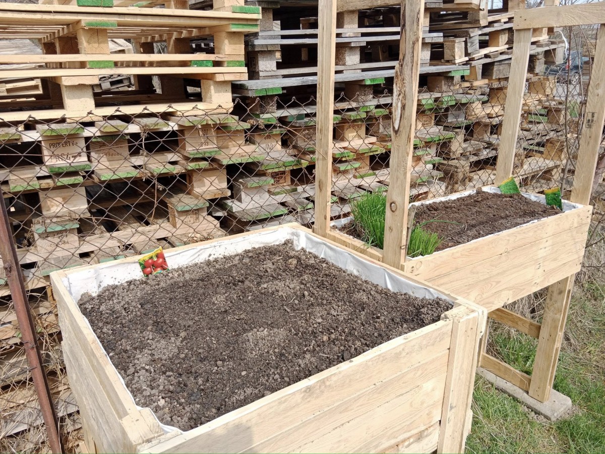 Mezi Honzovy výtvory z palet patří také tento vyvýšený záhon