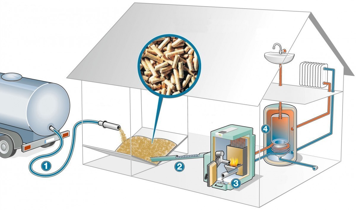 Zde můžete vidět schéma topného systému u kotle na pelety