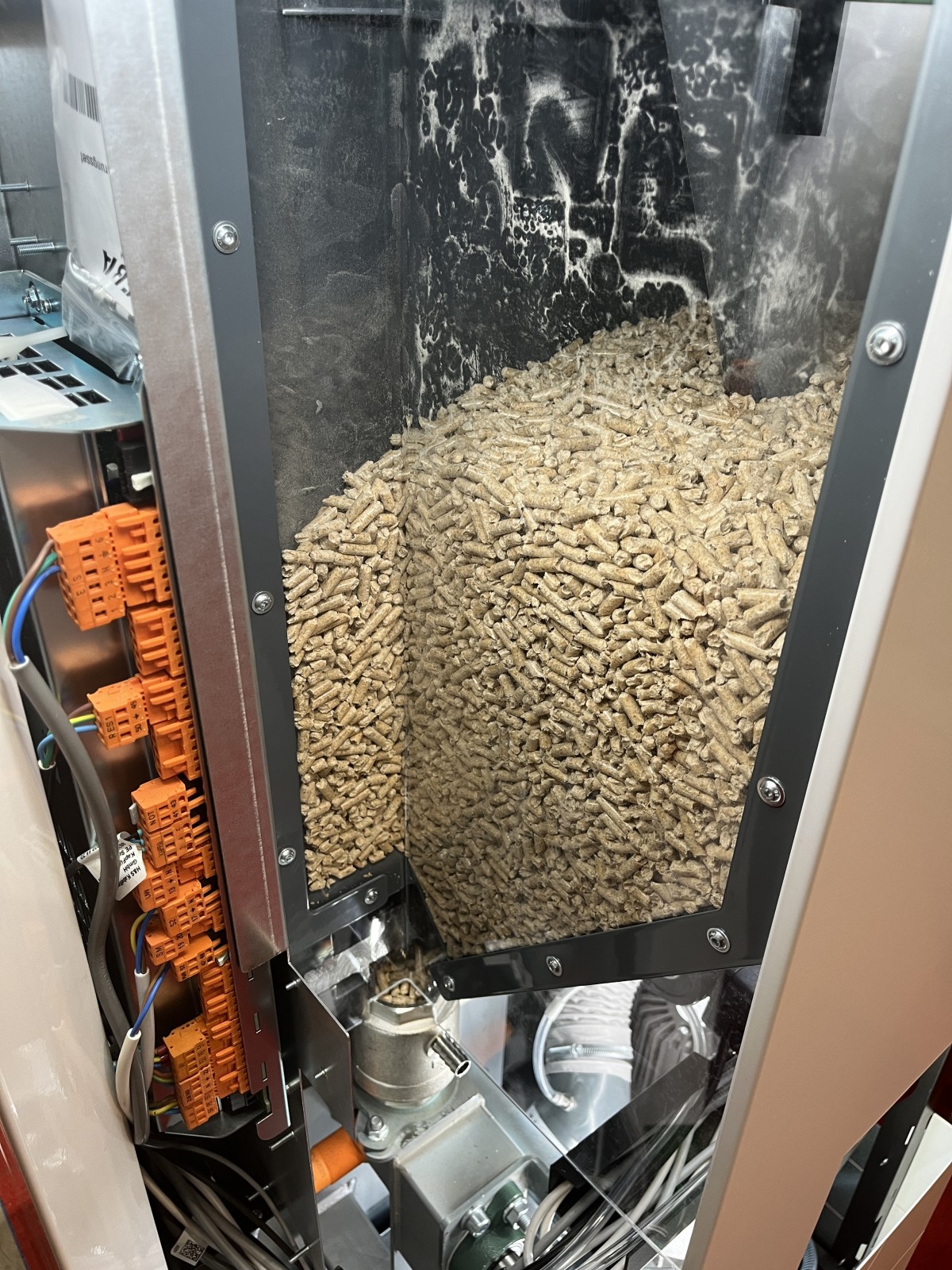 Detail zásobníku na pelety, pomocí kterého lze automaticky nastartovat kotel i na dálku