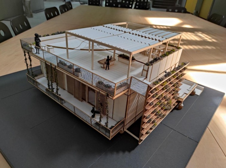 Studenti z ČVUT nejprve svůj návrh převedli do detailního modelu, na kterém testovali uspořádání prostoru, terasu se zelení i architektonické detaily