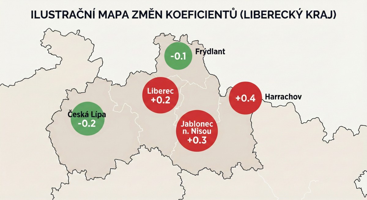 Změny koeficientů daně z nemovitých věcí ve vybraných městech Libereckého kraje pro rok 2026