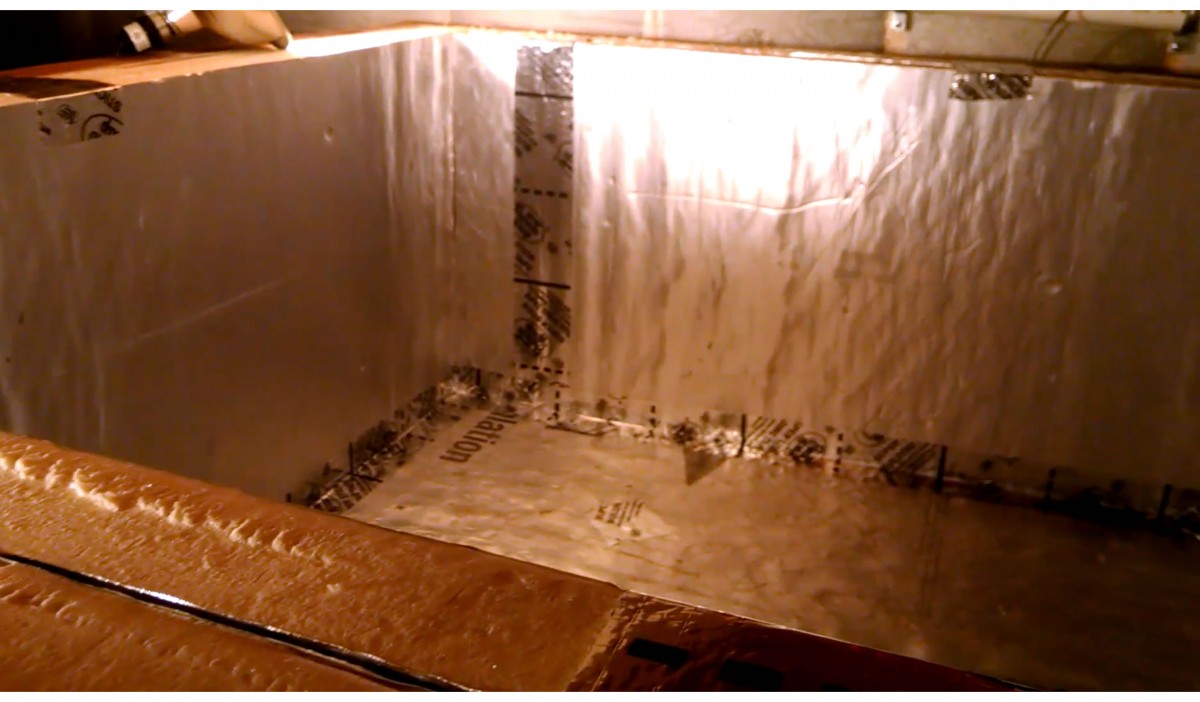 Energetické úložiště dánského typu se vystele izolací ve formě polystyrenu a folií