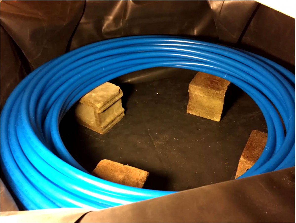 Následně se do úložiště instaluje hadice, která slouží jako tepelný výměník
