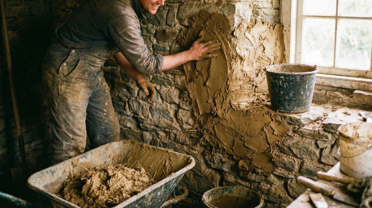 Proces stavby s hliněnou mazaninou je krásný svou bezprostředností. V první řadě musíte získat materiál. Můžete si zakoupit již připravené suché pytlované směsi od specializovaných firem, což zaručuje konzistentní kvalitu. Mnohem autentičtější a levnější je ale využití lokální hlíny vykopané přímo z vašeho pozemku z vrstvy nacházející se pod ornicí. Tuto hlínu stačí namočit do vody a vytvořit z ní hustou kaši. Následuje fáze zkoušení správného poměru jílu a kopaného písku, aby směs po nanesení na stěnu nepraskala. Do ideální směsi se nakonec přidá nasekaná sláma a vše se důkladně promíchá. Před samotným nanášením musíte podklad dobře navlhčit. Poté se nahazuje hrubá jádrová omítka s největším podílem slámy, která vyrovná velké nerovnosti. Hmotu stačí stahovat dřevěnou latí. Zde je nutné nechat stěnu velmi dobře a dlouze proschnout, klidně i několik týdnů, přičemž drobné praskliny vůbec nevadí. Po úplném vyschnutí hrubé vrstvy přichází na řadu jemná finální omítka obsahující pouze velmi drobný písek a případné barevné pigmenty. Ta se nanáší ocelovým hladítkem do hladka a posléze se upravuje filcovým nebo houbovým hladítkem.