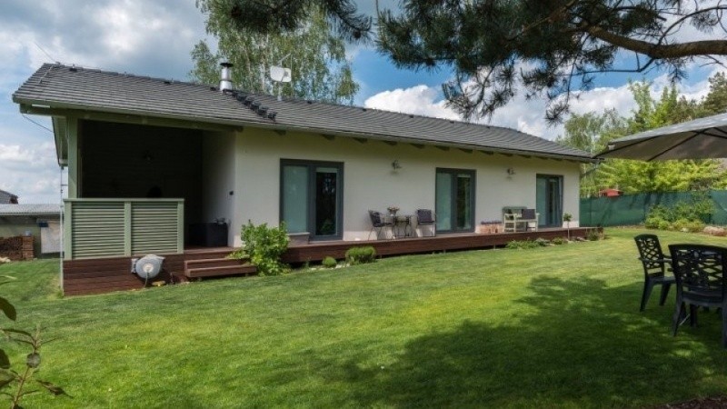 Moderní bungalov 4+kk získal obdiv veřejnosti nejen svým obdélníkovým tvarem, zastřešenou terasou a skvěle promyšlenou dispozicí
