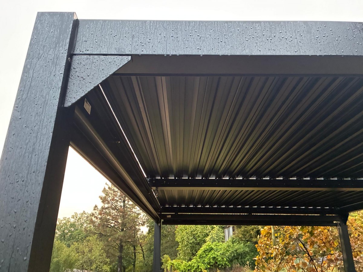 Bioklimatická pergola s lamelovým systémem má oproti klasické dřevěné pergole nespočet výhod