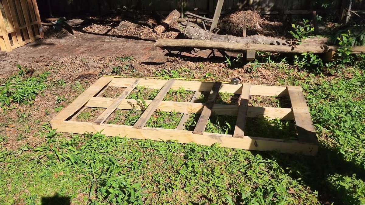 Z prken a hranolů skládá jednoduchý rám, který doplní konstrukci dřevníku
