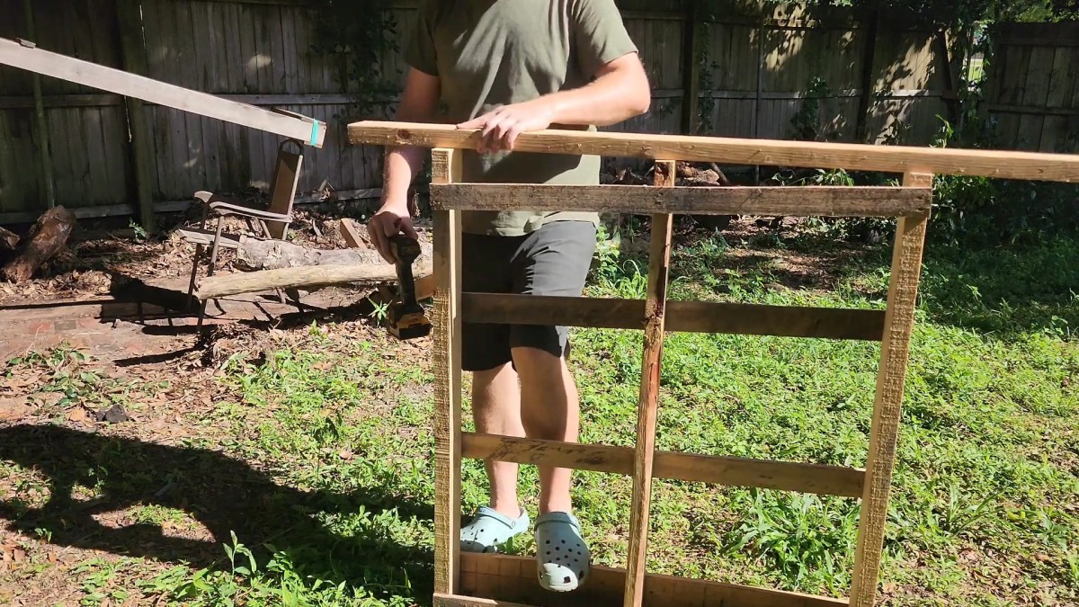Jednotlivé části spojuje pomocí vrutů, které zajišťují pevnější spoj než hřebíky. Konstrukce tak lépe odolá zatížení i pohybu dřev