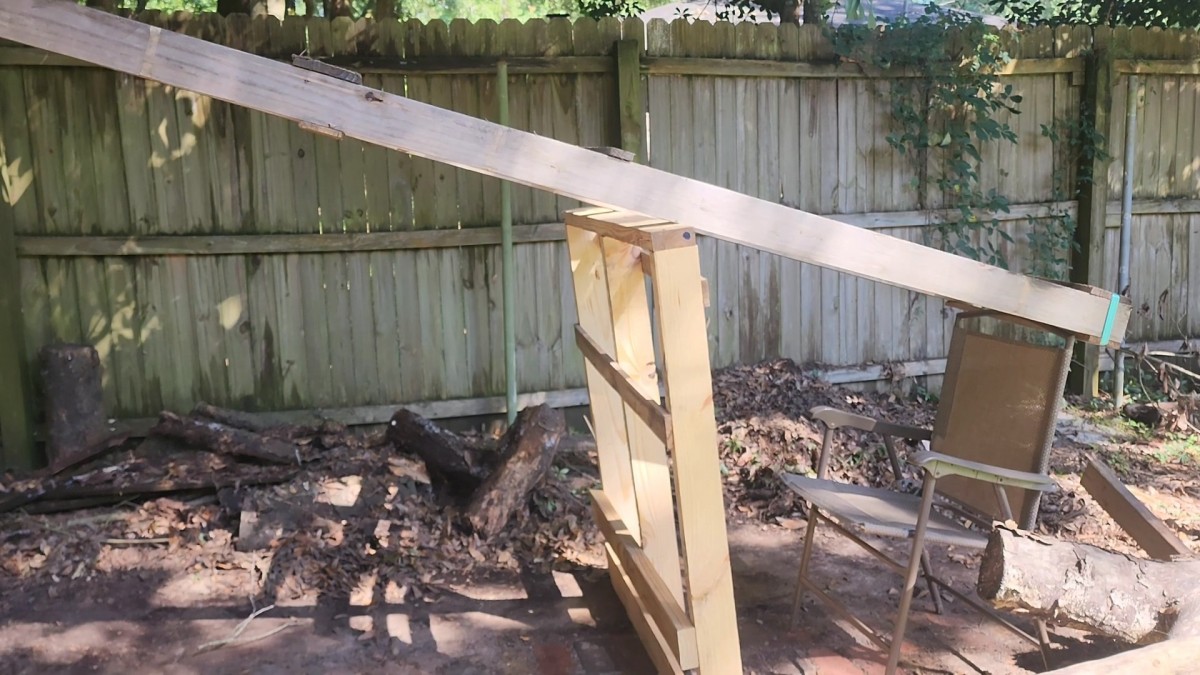 Boční rám je zatím volně opřený a pomáhá držet tvar vznikající konstrukce