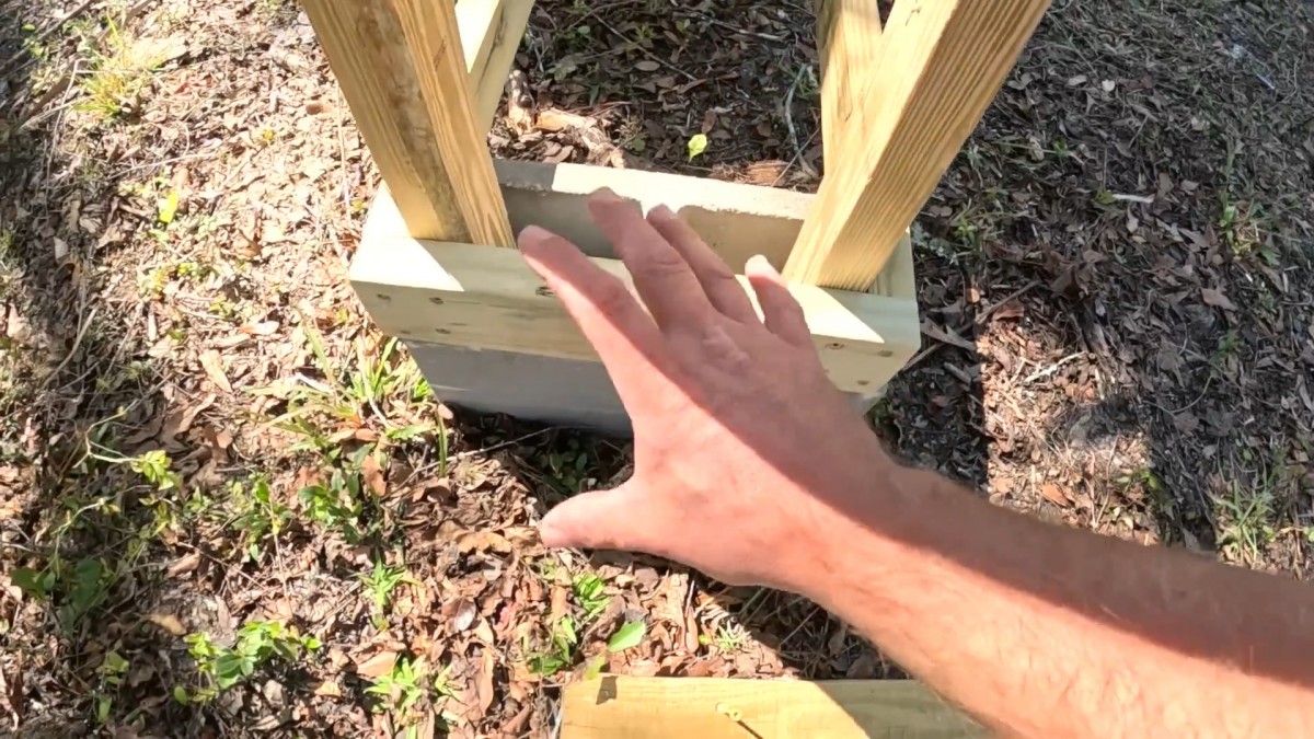 Detailní pohled na ukotvení a pevné spojení prken. Tento model se dá na rozdíl od toho prvního snadno přenést ve dvou jako celistvý kus.