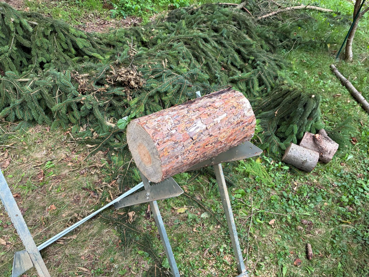 Další kus připraven na řezání. Díky stabilnímu stojanu a lehké pile šla práce snadno od ruky