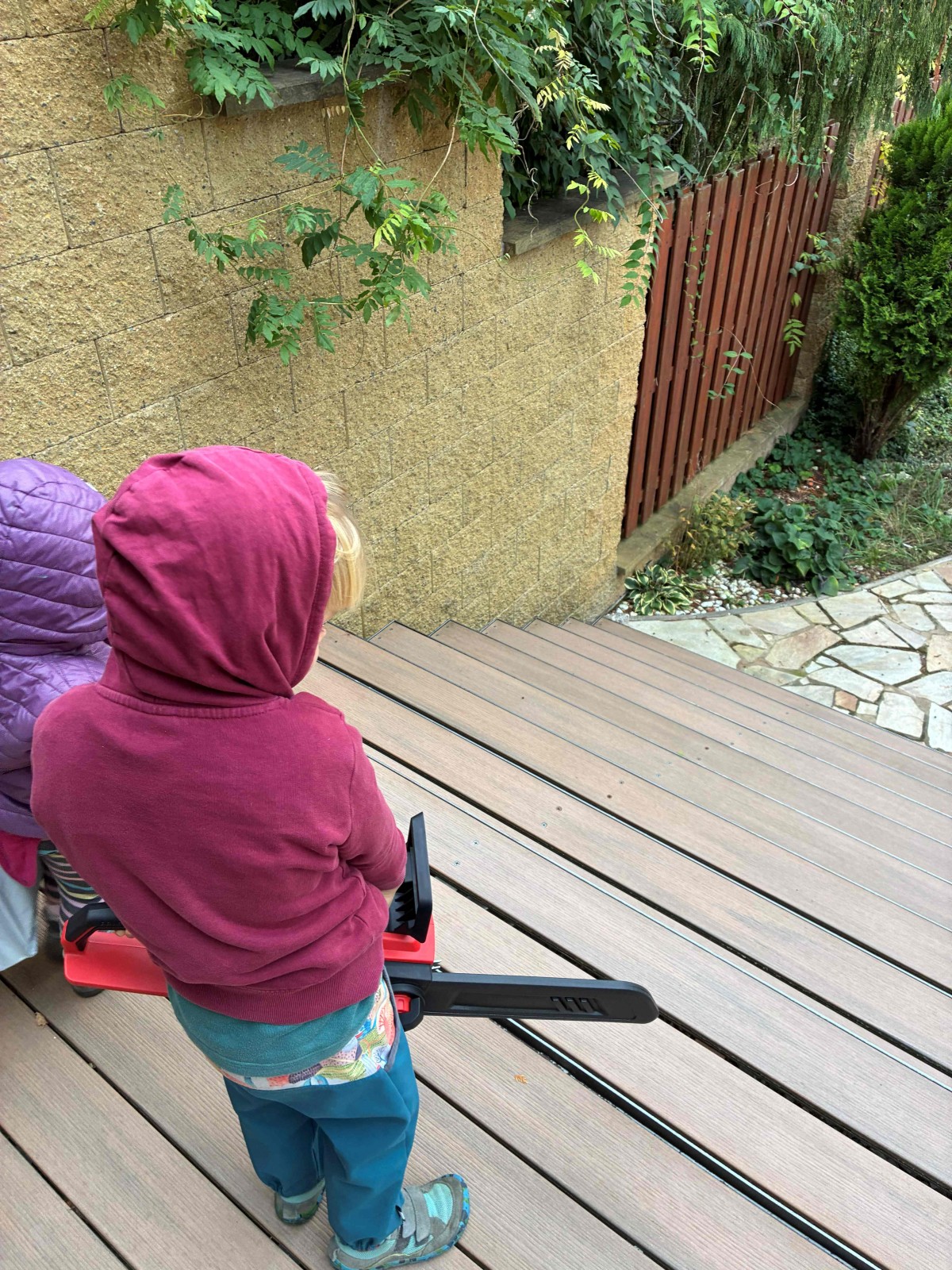 Pomocníci připraveni – i děti chtěly mamince pomoct. Pila byla naštěstí bezpečně vypnutá a práce zůstala na Jitce