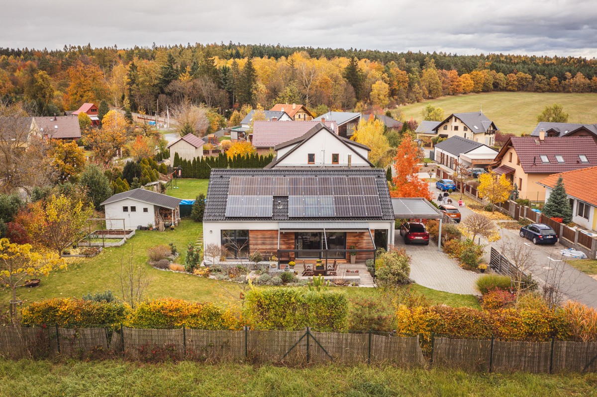 „Přípojky byly připravené na hranicích pozemku. Kupovali jsme ho 7 let poté, co už tady okolní domy stály,“ popisují partneři