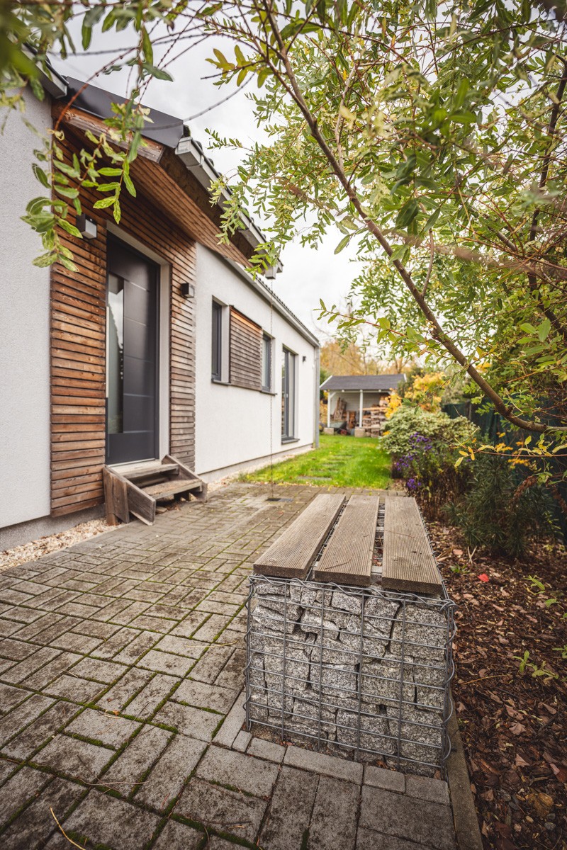 „Gabionová lavička a zídka v zahradě je vyrobená z 11 tun žuly. Dělal jsem to asi dva a půl měsíce,“ líčí majitel