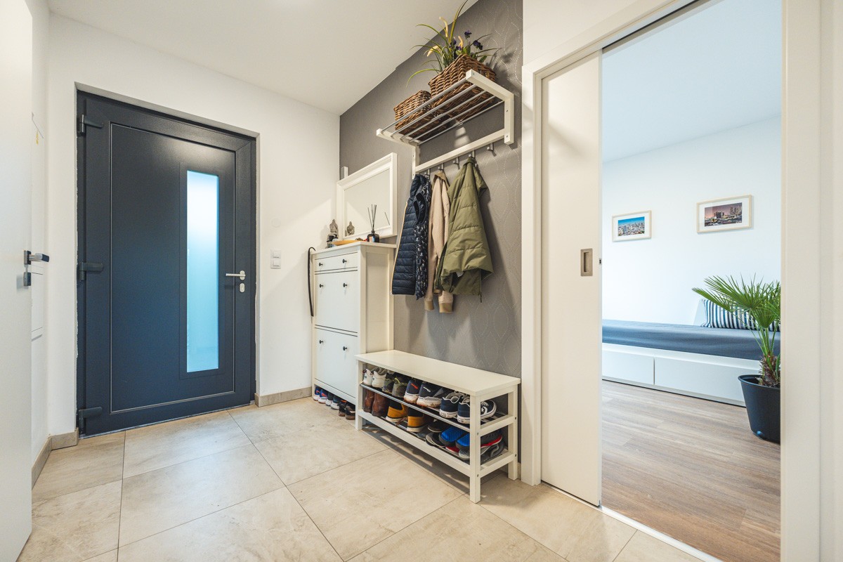 Po vstupu do rodinného domu se ocitnete v prostorné předsíni, odkud vedou dveře na WC, do technické místnosti, do pracovny a do hlavní obytné místnosti