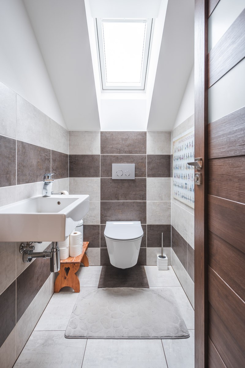 Záchod v prvním patře je oddělený od koupelny