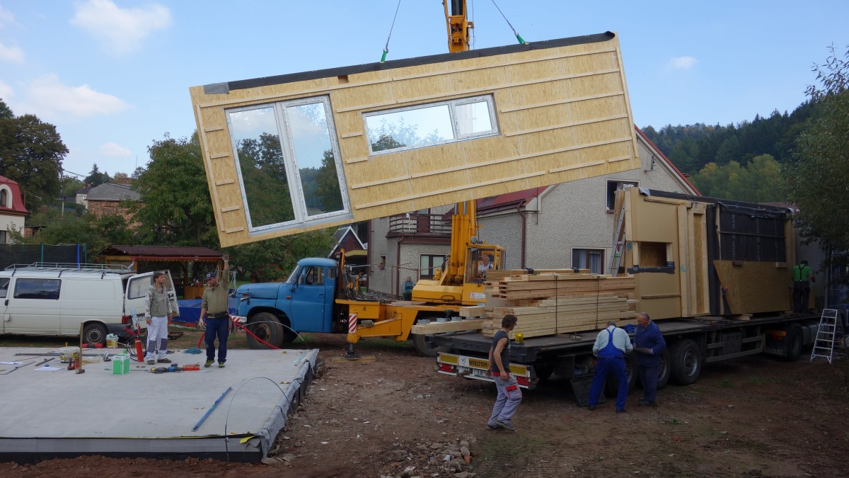Pomocí jeřábu se panely vyložily a následně smontovaly