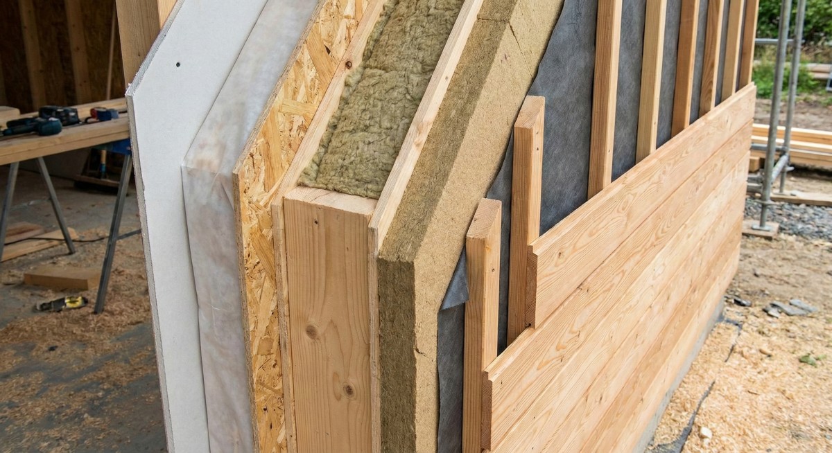 Skladba sendvičové dřevostavby umožňuje při stejných izolačních vlastnostech mít tenčí stěnu a tak ušetřit statisíce na pozemku i na stavbě
