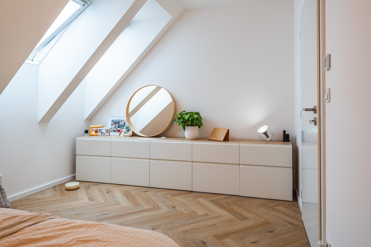 V celém domě jsou podlahy bez jediné spáry, lepený vinyl je položený bez soklů