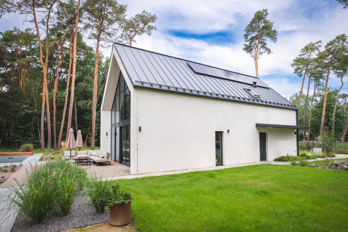 Mladá dvojice v sobě už nechtěla potlačovat touhu po větším klidu a vlastním domě, a tak se pustila do hledání parcely. Věděli, že na samotný dům budou mít velké požadavky, a proto hledali stavaře a stavební firmu, která by dokázala uspokojit i ty nejnáročnější nároky. A našli. Moderní dům s proskleným štítem vyrostl do roka a majitelé si nemohou spolupráci se stavařem z Prahy vynachválit.