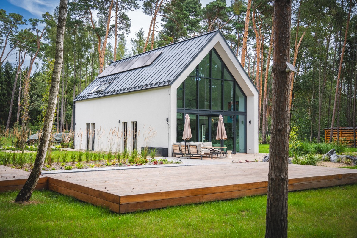 Mladá dvojice v sobě už nechtěla potlačovat touhu po větším klidu a vlastním domě, a tak se pustila do hledání parcely. Věděli, že na samotný dům budou mít velké požadavky, a proto hledali stavaře a stavební firmu, která by dokázala uspokojit i ty nejnáročnější nároky. A našli. Moderní dům s proskleným štítem vyrostl do roka a majitelé si nemohou spolupráci se stavařem z Prahy vynachválit.