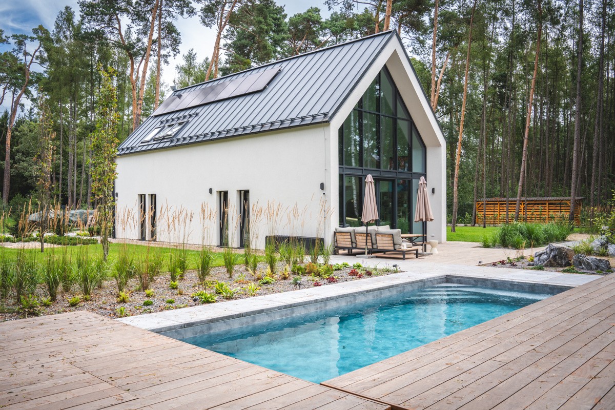 Mladá dvojice v sobě už nechtěla potlačovat touhu po větším klidu a vlastním domě, a tak se pustila do hledání parcely. Věděli, že na samotný dům budou mít velké požadavky, a proto hledali stavaře a stavební firmu, která by dokázala uspokojit i ty nejnáročnější nároky. A našli. Moderní dům s proskleným štítem vyrostl do roka a majitelé si nemohou spolupráci se stavařem z Prahy vynachválit.