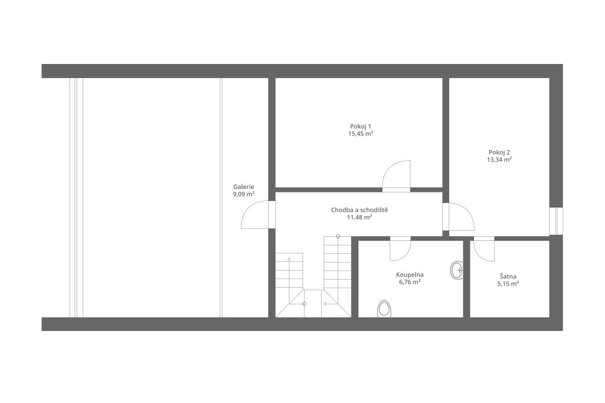 Ukázka půdorysu typového projektu s drobnými úpravami (2. NP)