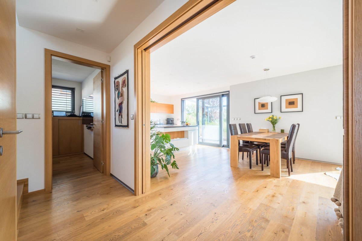 Hlavní obývací část je oddělena velkými posuvnými dveřmi (výška 2,2 m, šířka 2 m)