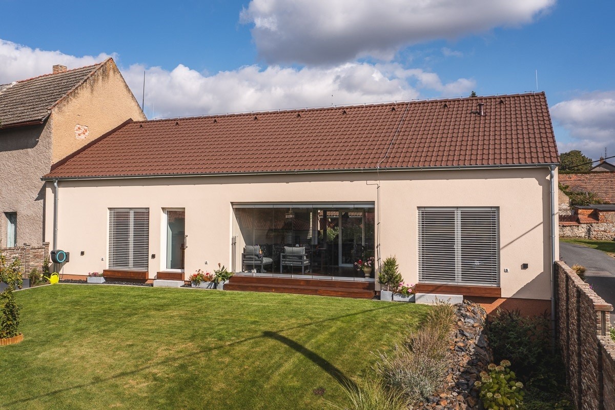 Když jejich pět dětí postupně vyletělo z hnízda, zůstali v obrovském domě sami. Velké pokoje, rozlehlá zahrada i náročná údržba byly najednou pro dva zbytečně velké sousto. Začali proto přemýšlet o menším a praktičtějším bydlení bez schodů, které jim bude dobře sloužit i v dalších letech. Řešení nakonec našli na pozemku se starým kamenným domkem po mamince. Ten zbourali a na jeho místě postavili dřevostavbu, kde mohou být mamince nablízku a ona má přitom svůj klid a soukromí.