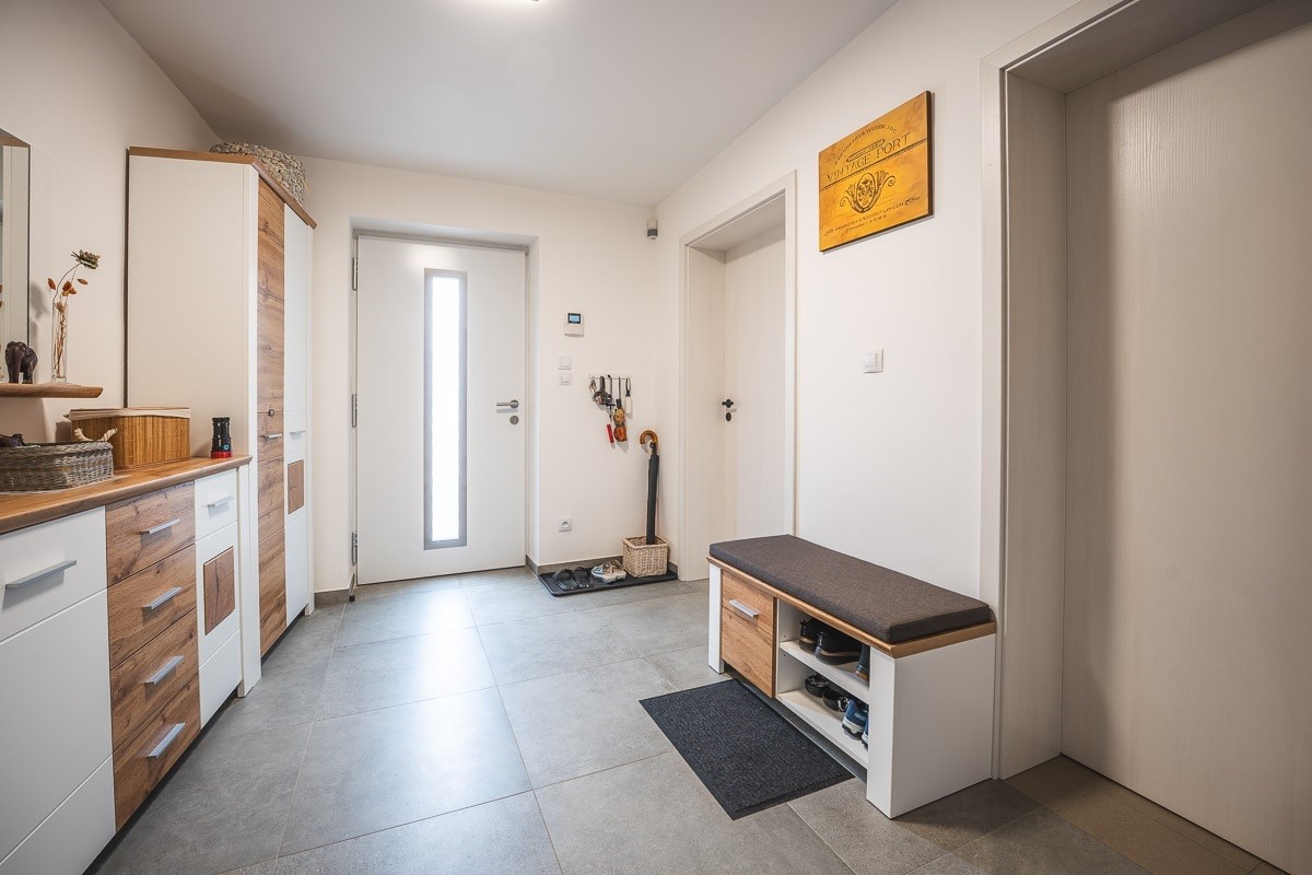 Interiér domu vychází z typového projektu, který si majitelé přizpůsobili podle vlastních zkušeností z předchozího bydlení