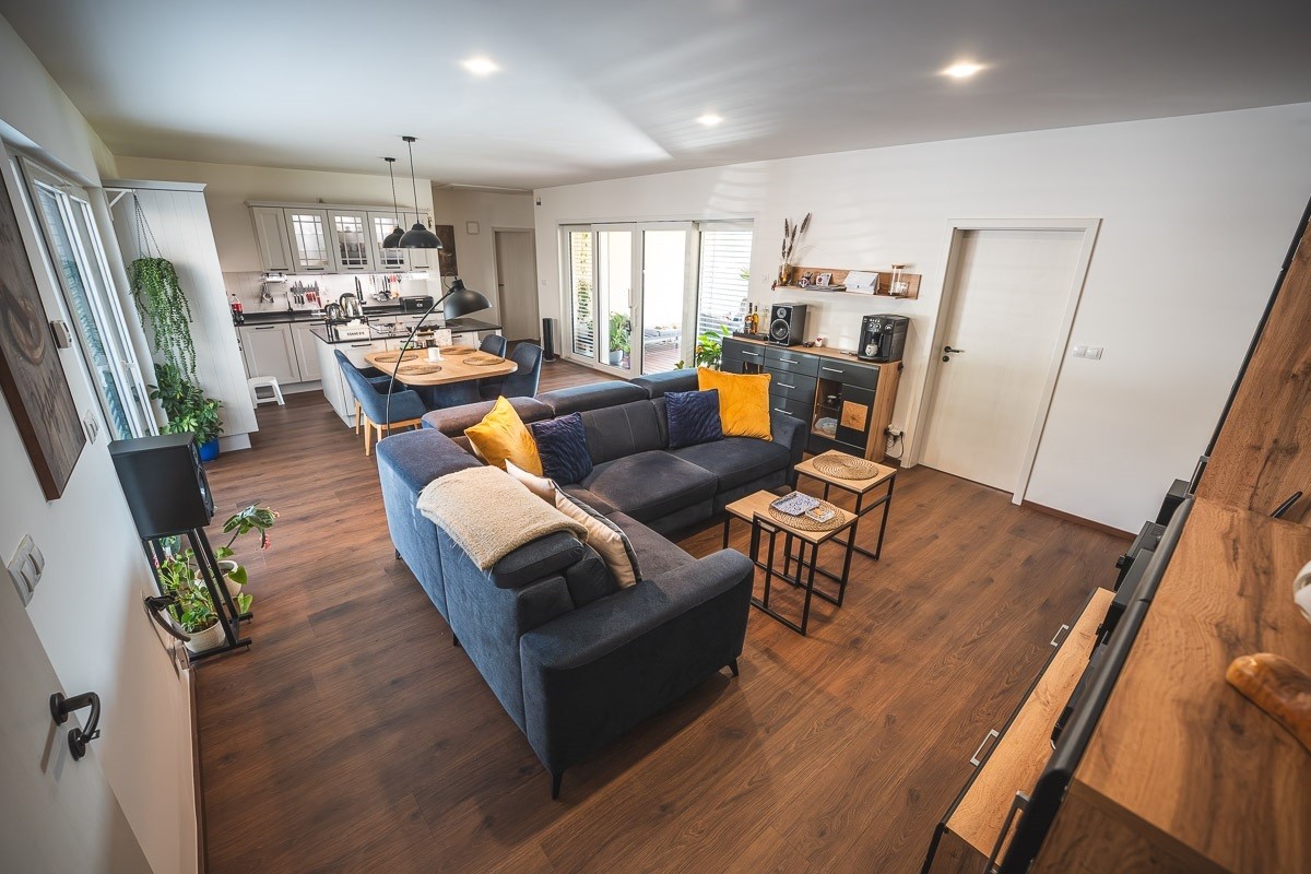 Když jejich pět dětí postupně vyletělo z hnízda, zůstali v obrovském domě sami. Velké pokoje, rozlehlá zahrada i náročná údržba byly najednou pro dva zbytečně velké sousto. Začali proto přemýšlet o menším a praktičtějším bydlení bez schodů, které jim bude dobře sloužit i v dalších letech. Řešení nakonec našli na pozemku se starým kamenným domkem po mamince. Ten zbourali a na jeho místě postavili dřevostavbu, kde mohou být mamince nablízku a ona má přitom svůj klid a soukromí.
