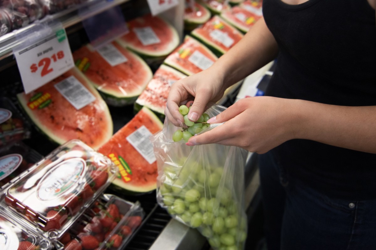 ...podobně i s hrozny. bere jen jednotlivé kuličky, aby zbytečně nepřeplácela