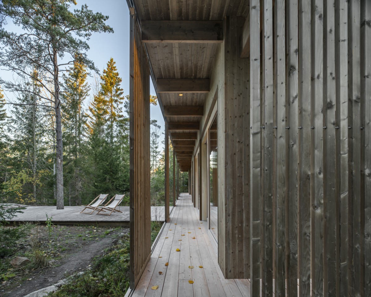 Místo chodeb využívá modulový dům pavlač spojující všechny místnosti
